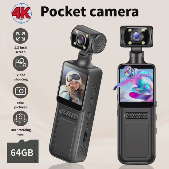 Capture every moment in stunning detail with this 4K handheld stabilizer pocket sports camera. Featuring a 180° rotating lens and a crisp 1.3-inch screen, it allows flexible framing and easy monitoring of your shots. Its portable, rechargeable design makes it ideal for on-the-go action shooting and vlogging, delivering smooth, high-definition footage wherever you are. Perfectly suited for outdoor adventures and dynamic filming, this camera combines advanced stabilization with compact convenience to elevate your video quality.