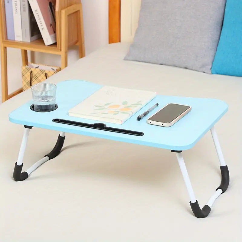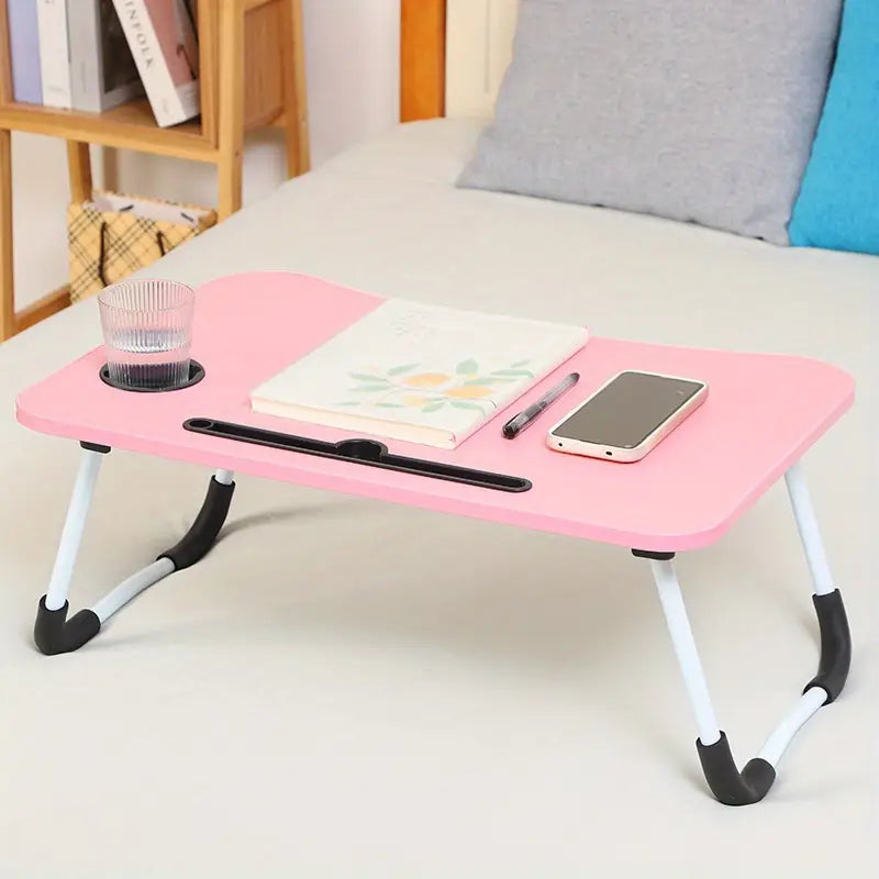 This foldable laptop desk table offers a space-saving solution ideal for small rooms, dorms, and bedrooms. Crafted from durable wood and artificial wood composite, it features a sturdy frame that ensures stability and long-lasting use without requiring assembly. Its built-in storage compartment keeps essentials within reach, enhancing convenience for both work and dining. The minimalist, modern design complements any setting while maximizing functionality, making it a versatile addition to compact living spaces.