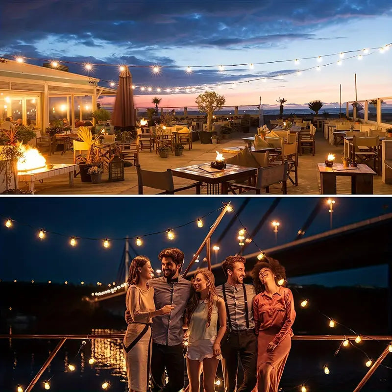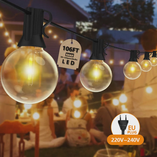 Illuminate your outdoor spaces with the G40 LED String Lights, available in 12.8m+18+2 Bulbs. Featuring durable black lines and E12 sockets, these bulbs create a warm, inviting atmosphere ideal for gardens, weddings, parties, or holiday decorations. Designed for easy hanging, they provide consistent, energy-efficient lighting to enhance backyard gatherings or festive occasions. Their versatile length options allow customization to fit any setting perfectly.